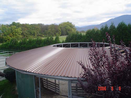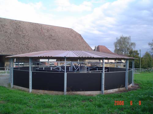 TRACO heeft een uniek systeem uitgedacht om iedere trainingsmolen te kunnen voorzien van een overkapping. Een overkapping beschermd de trainende paarden natuurlijk tegen regen en felle zonneschijn. Ook blijft de hoefslag droog bij regen door de brede overkapping. Ook de kleur en soort van de dakbedekking kan aan de omgeving worden aangepast. Door de speciale constructie is het niet nodig om een kostbare fundatie aan te brengen. Door de intergratie met de buitenomheining wordt de trainingsmolen fraai afgewerkt